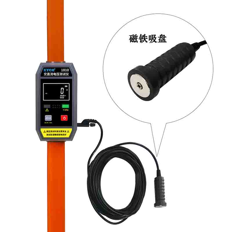 ETCR1810交直流電壓測試儀又稱地鐵專用直流電壓測試儀、高壓電壓測試儀,用于電力高低壓線路及鐵路接觸網(wǎng)線路對地電壓的測量及驗電報警,電壓測量范圍可達35kV。儀表采用伸縮桿結(jié)構,收縮長度1600mm,展開長度5000mm。輸電線路停電維護時,由于電容效應,鄰近運行線路會產(chǎn)生感應電壓,嚴重威脅檢修測試儀器及運維作業(yè)人員的安全,本儀表可快速測量輸電線路運行時的電壓或維護時的感應電壓,保護設備及作業(yè)人員的安全。