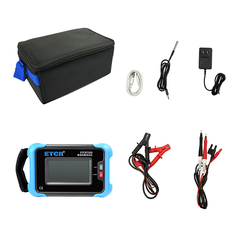 ETCR7550電池內(nèi)阻測試儀又稱充電電池測試儀、電池測試儀,本儀器是用于測量鉛蓄電池、鎳鎘、鎳氫電池、鋰電池的內(nèi)阻、電壓、溫度以判斷電池健康狀態(tài)的測量儀器。本儀表使用開爾文交流4線法測量電池內(nèi)阻,可不受測試線、端子與電池電極之間接觸電阻影響測量正確的測量值。