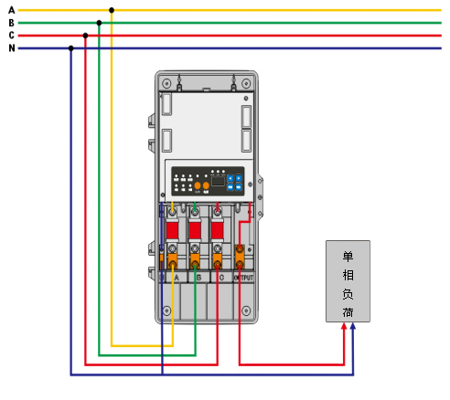裝置具有手動換相和自動換相兩種換相模式。手動換相模式:用戶可手動將負載切換至A、B、C任一相供電,以滿足用戶特殊情況的需求。自動換相模式:裝置自動將負載從低壓相切換至高壓相,確保負載正常工作。