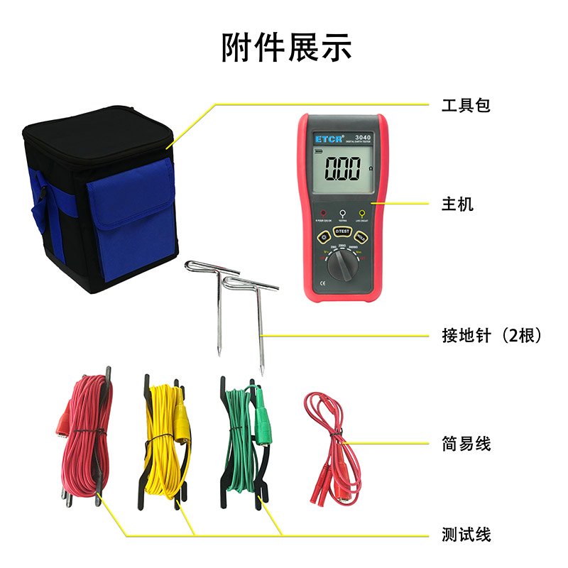 ETCR3040數(shù)字式接地電阻測(cè)試儀由主機(jī)、測(cè)試線等組成。具有自動(dòng)關(guān)機(jī)功能、儀表全量程自動(dòng)換擋、抗干擾能力強(qiáng)、操作更簡(jiǎn)易。其廣泛應(yīng)用于電力、電信、氣象、油田、建筑、防雷及工業(yè)電氣設(shè)備等的接地電阻測(cè)量。