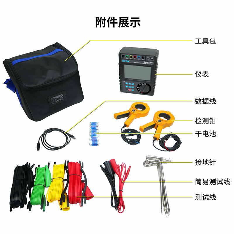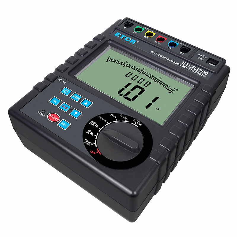 ETCR3200雙鉗接地電阻測試儀,由主機、電流鉗(雙鉗)、數(shù)據軟件、測試線、輔助接地棒、通訊線等組成。主機超大LCD顯示,具有背光、棒圖指示,一目了然。同時能存儲2000組數(shù)據,通過USB接口數(shù)據軟件可以實現(xiàn)歷史數(shù)據讀取、查閱、保存、報表、打印等功能。