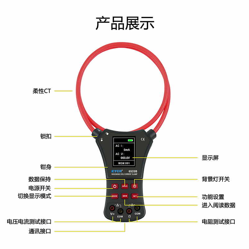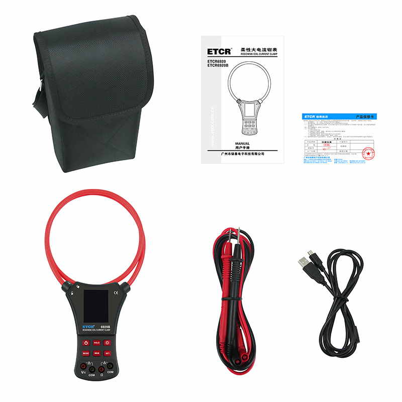 ETCR6920B柔性電流鉗表又名柔性線圈鉗表、超大電流鉗表、羅氏線圈電流鉗表、洛氏線圈電流鉗表,用于交流電流測試、電壓測試、電阻測試、通斷測試。柔性線圈無任何裸露金屬導體,體積小、重量輕、柔軟靈活,特別適合大尺寸導體、狹窄環(huán)境和排線密集的場所,可用于信號嚴重畸變的工業(yè)環(huán)境電流測試。廣泛適用于電力、通信、氣象、鐵路、油田、建筑、計量、科研教學單位、工礦企業(yè)等領(lǐng)域。