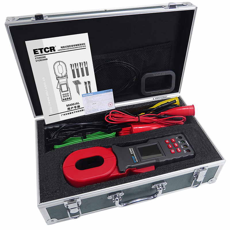 ETCR2300B地樁式鉗形接地電阻表又稱地樁式鉗形接地電阻表、地樁式鉗形表,用于現(xiàn)場測量接地電阻、土壤電阻率、接地電流、接地電壓。儀表具有鉗表法、二線法、三線法、四線法、選擇法等各種測量方法,儀表導入FFT(快速傅立葉變換)技術(shù)、AFC(自動頻率控制)技術(shù),具有獨特的抗干擾能力和環(huán)境適應能力,重復測試一致性強,確保測量的高精度、高穩(wěn)定性和高可靠性。
