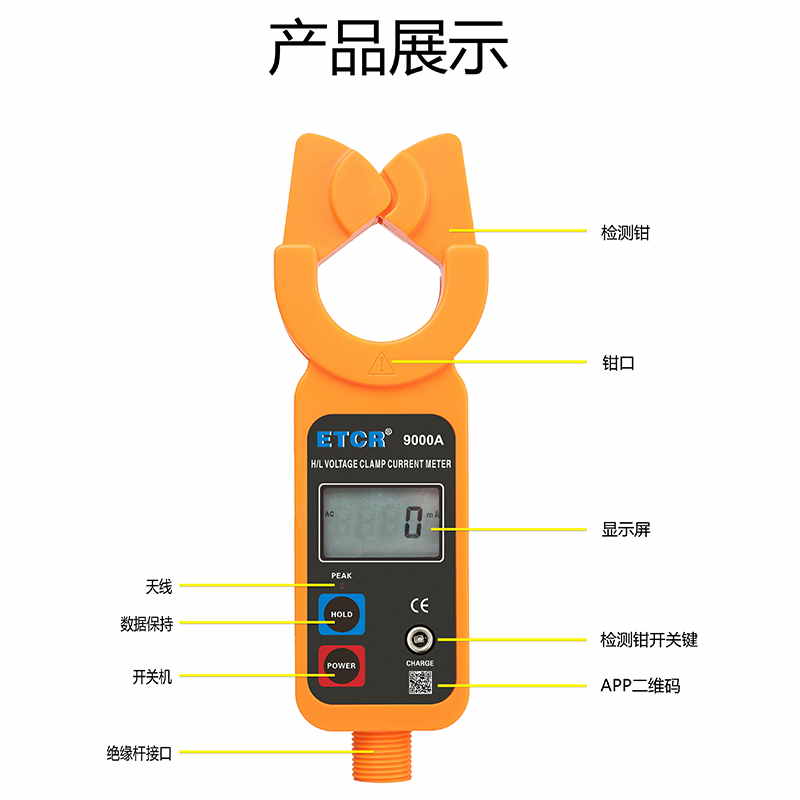 ETCR9000A藍(lán)牙版高低壓鉗形電流表又稱(chēng)架空線(xiàn)路負(fù)載測(cè)試儀,高壓負(fù)載測(cè)試儀、高空電流測(cè)試儀、高壓電流遙測(cè)儀,用于測(cè)量架空線(xiàn)路高低壓電流。儀表由專(zhuān)用鉗形電流表配高壓絕緣桿組成。若不使用絕緣桿,還可以當(dāng)作高精度低壓鉗形電流表使用。廣泛應(yīng)用于變電站﹑發(fā)電廠﹑工礦企業(yè)以及檢測(cè)站﹑電工維修部門(mén)進(jìn)行電流檢測(cè)和野外電工作業(yè)等。