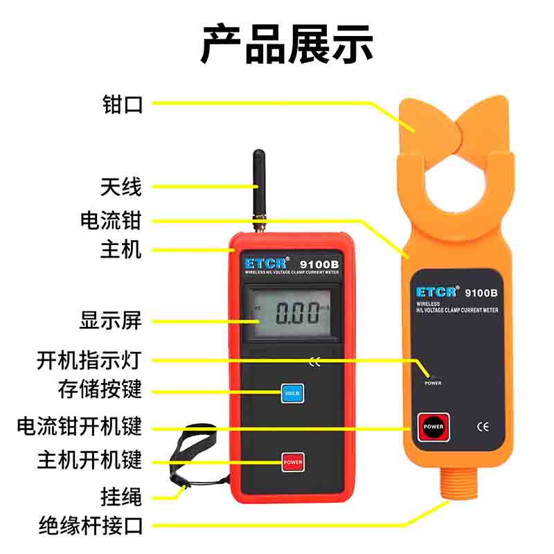 | ETCR9100B無線高低壓鉗形電流表 | Φ33mm | AC 0.00mA~600.0A | 99組 | —— | 30m |