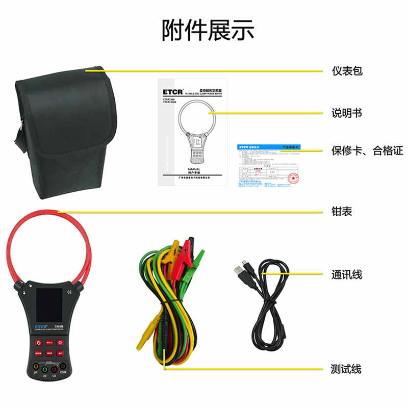 | ETCR7350柔性鉗形功率表 | AC 0.0A~6000A | 0.00V~600V | 0.0°~360° | Φ200mm | 200組 |
