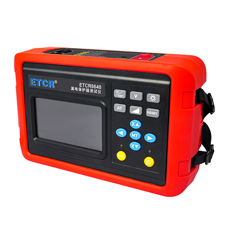 ETCR8640漏電保護器測試儀采用4.3寸彩屏。輸出電流、動作時間、電池電量、相位等同屏顯示,具有自動關機、相位選擇、背光選擇等功能,儀表操作簡便,精度高、體積小、重量輕、外觀精致,便于攜帶,是各種漏電保護器現(xiàn)場或室內(nèi)檢測的理想工具。