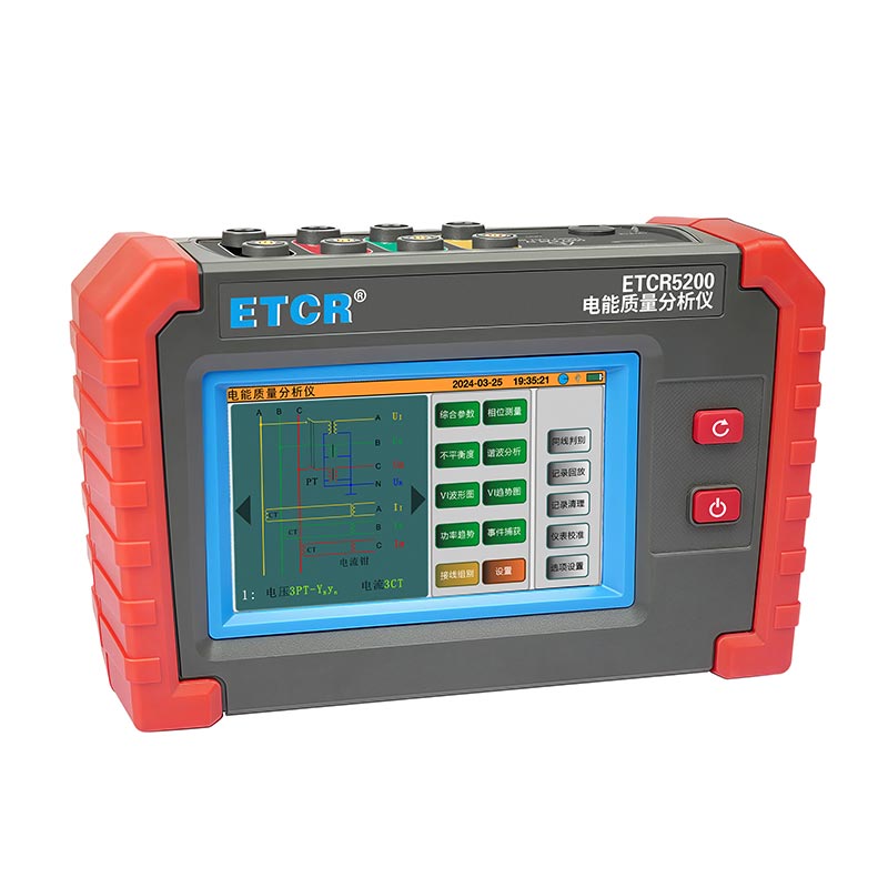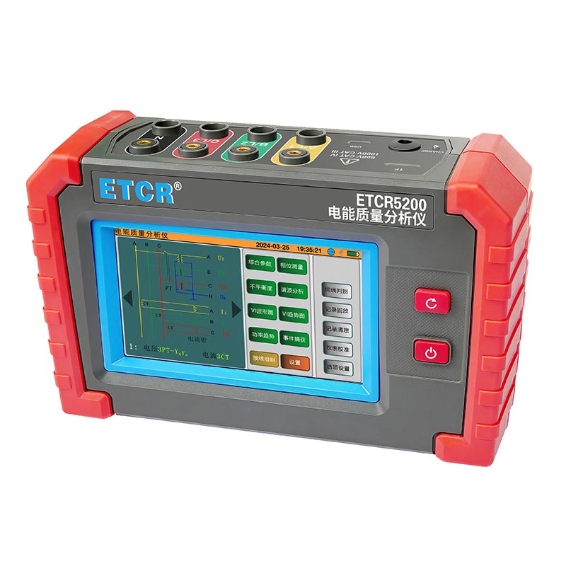 ETCR5200迷你型電能質(zhì)量分析儀又稱電力質(zhì)量分析儀、電力參數(shù)測試儀、諧波分析儀,是一款專為現(xiàn)場測試三相電能質(zhì)量的高精度綜合型測試儀器。儀表具有智能化、功能完善、人機(jī)操作簡潔、中英文雙語操作界面等特點(diǎn)。儀表采用5寸觸摸彩屏、體積小重量輕、攜帶方便,可選配多款電流鉗。儀表可同時測量4路電流(ABC三相及中性線電流),3路電壓、三相不平衡度、有功功率、無功功率、視在功率、諧波比、總諧波失真度等;顯示電流電壓的實時波形、相量圖;動態(tài)捕捉電壓電流瞬時變化,監(jiān)測啟動電流,監(jiān)測各電力參數(shù)并生成告警列表,長時間記錄測試數(shù)據(jù)并生成趨勢曲線圖等功能。適用于電力、石化、冶金、鐵路、工礦企業(yè)、科研院校、計量部門等。