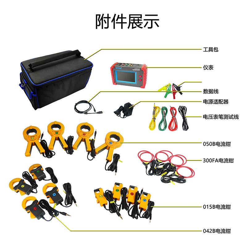 | 電流鉗規(guī)格(選配) | 015B電流鉗:17mm×18mm 042B電流鉗:Φ40mm 050B電流鉗:Φ50mm 200F柔性電流鉗:Φ200mm |