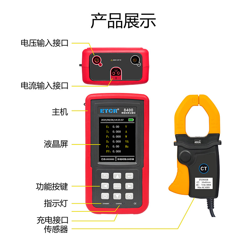 在線監(jiān)測與記錄單相電力的工作電流、電壓、頻率、功率。用于低壓線路及用電設(shè)備的故障排查、線路檢修。