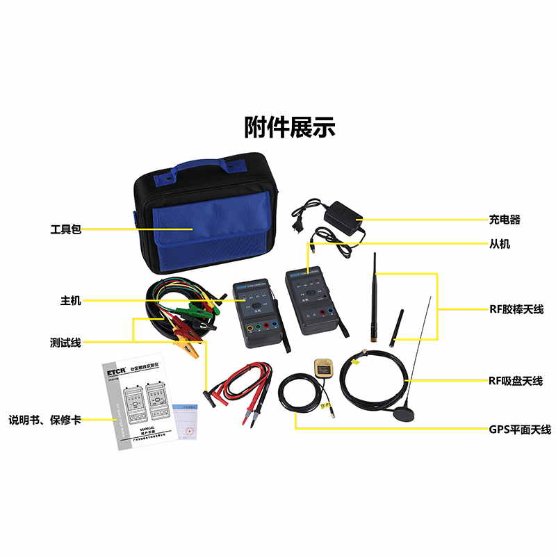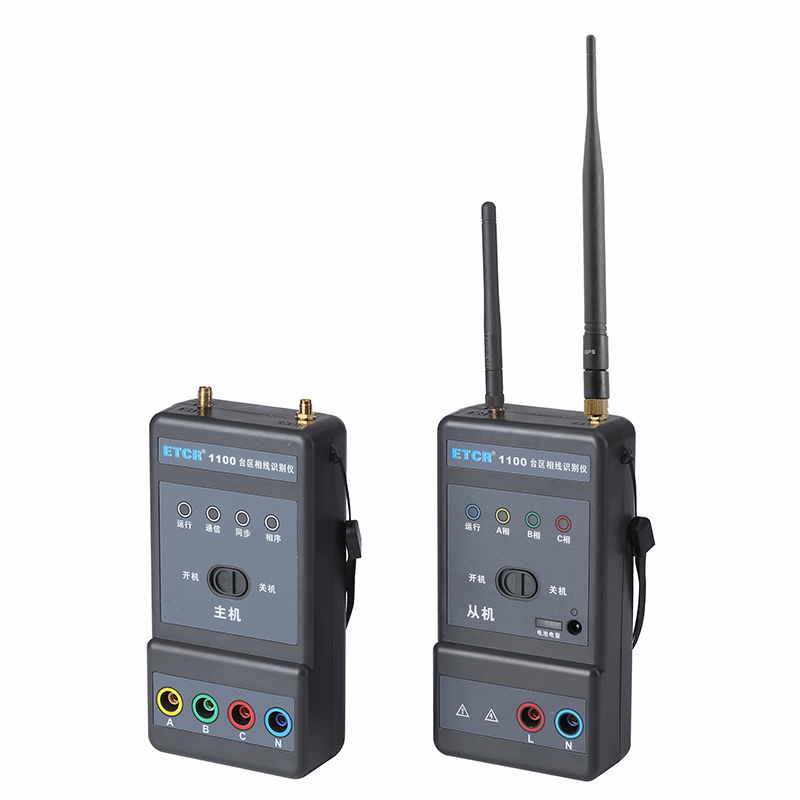 ETCR1100臺區(qū)相線識別儀由主機、從機、RF天線、測試線組成。通過衛(wèi)星通信等新技術手段,能快速準確識別同一臺區(qū)距離較遠的線路兩點各相線相別是否一致。儀表通訊距離遠(最大可達8公里)臺區(qū)全覆蓋,即便城區(qū)建筑物密集臺區(qū)也能快速判斷相線,儀表操作簡易,準確直觀,體積小攜帶方便、安全快速,廣泛應用于電纜施工、設備安裝、線路維護工作,特別適合三相不平衡治理裝置安裝施工使用。
