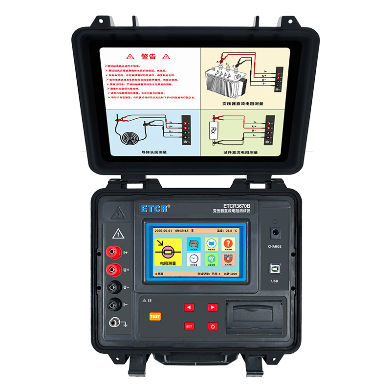 ETCR3670B變壓器直流電阻測試儀又稱變壓器繞阻測試儀,直流電阻測試儀,用于快速測量各種變壓器繞阻直流電阻。變壓器制造中半成品、成品出廠試驗、安裝、交接試驗及電力部門預防性試驗的必測項目,能有效發(fā)現變壓器線圈的選材、焊接、連接部位松動、缺股、斷線等制造缺陷和運行后存在的隱患。
