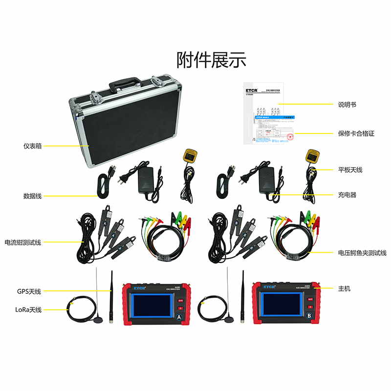 ETCR4480無線三相相位伏安表又稱三相電力參數(shù)測試儀、CT負荷測試儀、PT負荷測試儀,用于變電站內(nèi)不同位置的三相電力參數(shù)測量、PT無線核相、PT負荷測試、CT負荷測試、三相不平衡度測試、諧波分析等。儀表由2臺手持終端、6個電流鉗、2組電壓測試線等組成,2臺手持終端具有無線通訊及GPS通訊,可互設為主機或從機,實現(xiàn)同步測量變電站內(nèi)不同位置之間電流、電壓、相位等參數(shù)。