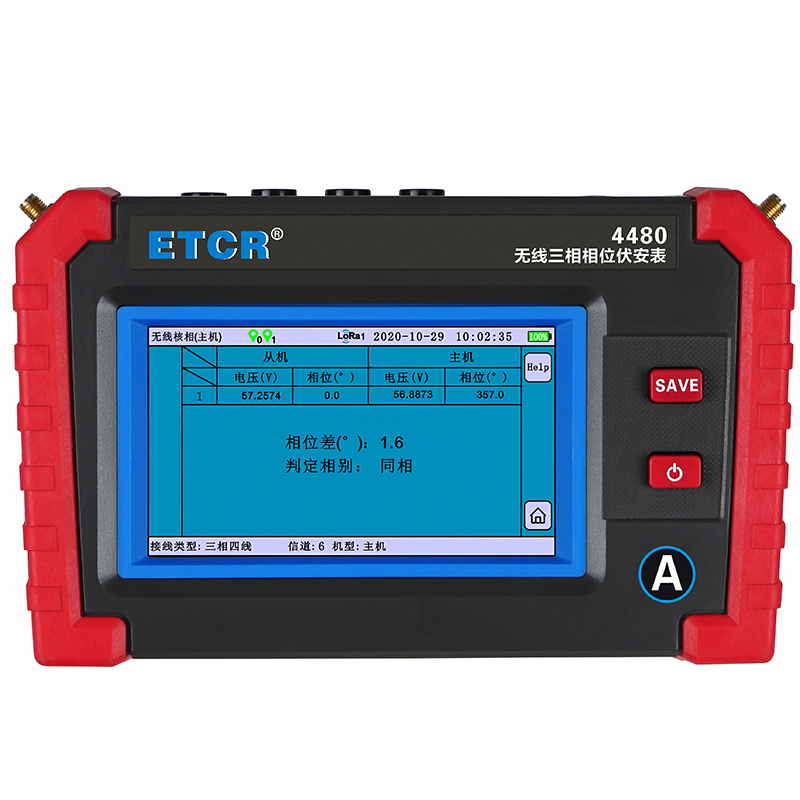 ETCR4480無線三相相位伏安表采用5寸觸摸彩屏、中文界面、功能直達、自動測量、操作簡易快捷,準確可靠,儀表采用大容量可充電鋰電池、具有數(shù)據(jù)存儲、數(shù)據(jù)查閱、自動關機、USB接口數(shù)據(jù)上傳導出等功能。儀表具有支持安卓系統(tǒng)的藍牙通訊,可在手機進行測試或查看測試記錄。本儀器采用專用計量芯片,具備非常高的電參數(shù)測量精度,能夠?qū)崟r顯示待測參數(shù)的變化,同時具備一鍵保存數(shù)據(jù)的功能。產(chǎn)品操作簡單、使用方便、測量快速、穩(wěn)定、結(jié)果可靠,是電力系統(tǒng)電能計量和繼電保護專業(yè),進行二次回路現(xiàn)場檢測的新一代儀表,也廣泛適用于電氣設備制造、石油化工、鋼鐵冶金、鐵路電氣化、科研教學等部門。