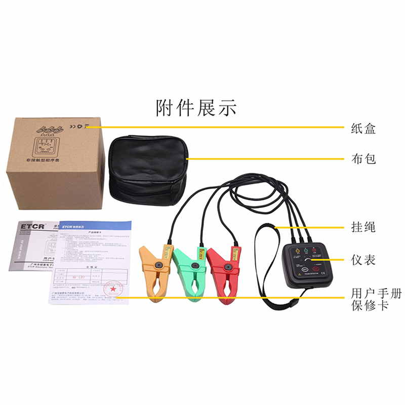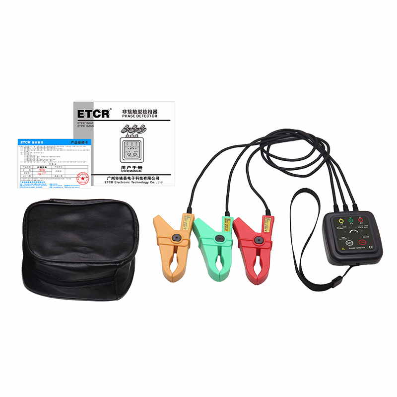 ETCR1000D非接觸型檢相器又稱非接觸相序表、相序檢測儀、電機(jī)三相檢測儀、相序測試儀、馬達(dá)轉(zhuǎn)向測試儀,用于相序檢測(正相、逆相、缺相)、活線檢查、簡易檢電、火線識別、缺相判斷、斷線位置查找、線路檢修。