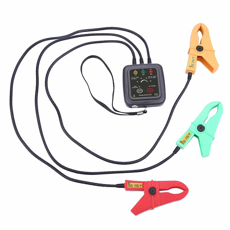 1、采用鉗形非接觸感應(yīng)式測量,不用剝開電纜線外皮,無需接觸高壓裸露火線,直接將三個超感應(yīng)高絕緣鉗夾分別夾住三相火線的絕緣外皮即可檢測相序。