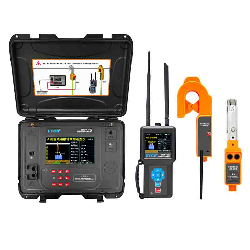 ETCR1400C架空線路接地故障巡查儀,可進行多條線路的接地故障定位。在架空線路停運后,由高壓發(fā)射端向線路施加低頻高壓信號,電流檢測鉗檢測電纜線的信號,通過主機分析脈沖電流及阻抗,判斷有無接地故障,在接收機液晶屏顯示及語音播報檢測結果。
