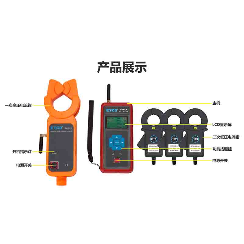 | ETCR9500C-030三路無(wú)線高壓CT變比測(cè)試儀 | ≤35kV | 0.0A ~800A | 0.0mA~10A | 100m | 1~9999 | -- | 同時(shí)測(cè)量3路二次電流 |