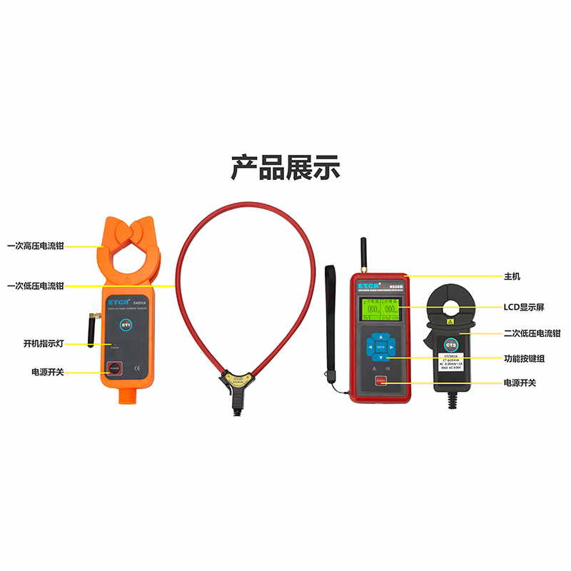 ETCR9550B無線高壓CT變比測試儀又稱互感器電流變比測試儀、互感器比差測試儀、電流互感器變比測試儀,用于35kV以下電流互感器的一次電流、二次電流大小、變比、角差,相別、極性判斷。廣泛應(yīng)用于變電站﹑發(fā)電廠﹑電力稽查部門、工礦企業(yè)以及檢測站﹑電工維修部門進行電流檢測、反竊電及野外電工作業(yè)等。